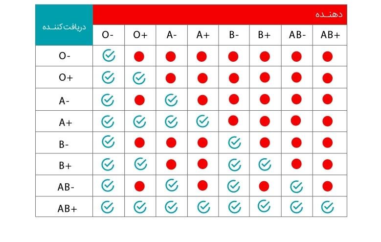 جدول بالا اساس تصمیم گیری برای انتقال خون به افراد می باشد. البته آنتی ژن و آنتی بادی Rh نیز در این تصمیم گیری دخیل می باشند. اگر فردی با گروه خونی A از فردی با گروه خونی B خون یا فرآوردهای خونی دریافت نماید به علت اینکه در بدن او آنتی بادی هایی بر علیه B وجود دارد، بدن او گلبول های قرمز واجد آنتی ژن B را دشمن تشخیص داده، به آنها حمله می کند و آنها را تخریب می نماید که در نتیجه این گلبولهای تخریب شده در خون فرد رسوب می نماید و باعث خطرات جانی جدی برای فرد گیرنده می شوند.